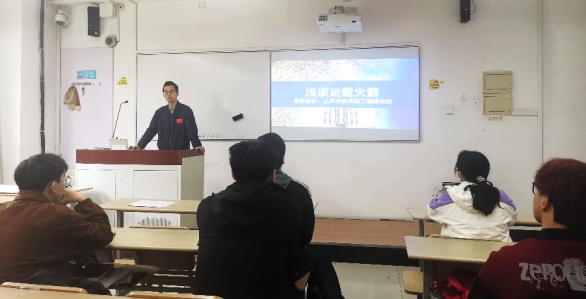 课堂上,肖研究员围绕运载火箭从“概论”、“理工方面“和”文史方面“三个角度循序渐近,逐步展开,介绍了运载火箭的分类、组成、原理与制造、技术创新与挑战,钛合金、铝合金和镁合金在运载火箭中的应用。分享内容丰富,引起了同学们的极大兴趣。