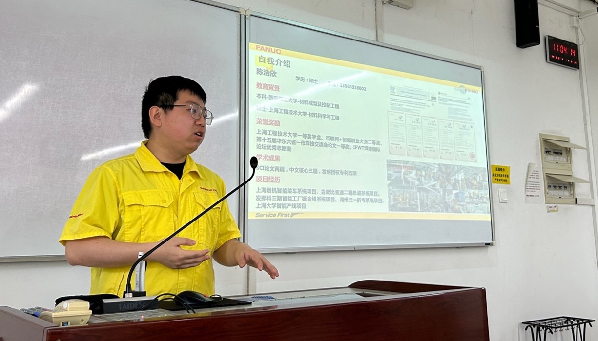 5月10号上午,威廉希尔足球官网邀请上海发那科机器人有限公司技术经理陈浩欣走进《焊接过程测量与计算机控制》课堂,在教学楼D211为公司焊接工程与技术专业2021级本科生和部分研究生带来了一堂科技感满满的“发那科焊接机器人及其智能化应用”授课,让员工们更加深入地了解智能化焊接过程中各种传感器检测与计算机控制的重要性。