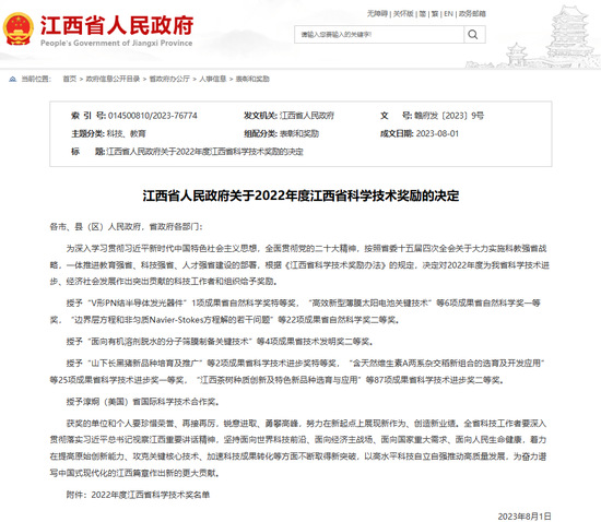8月1日,江西省人民政府公布了关于2022年度江西省科学技术奖励的决定,对2022年度为江西省科学技术进步、经济社会发展作出突出贡献的科技工作者和组织给予奖励。其中,公司(第二完成单位)威廉希尔足球官网杨瑾副教授(第二完成人)参与的“代表性焊接/连接中的界面设计、冶金过程与强韧化调控”荣获自然科学二等奖。