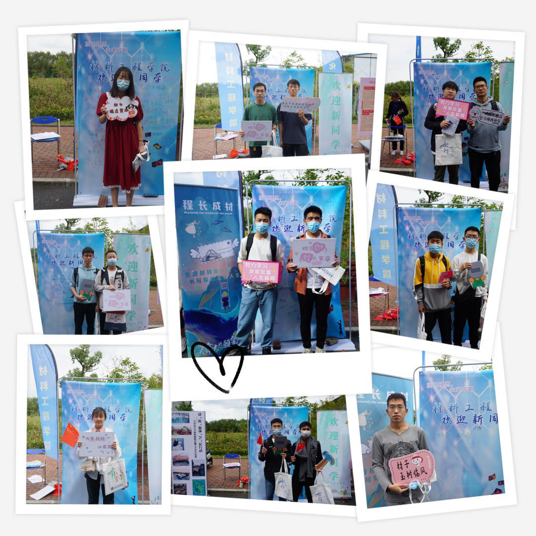 公司还在新生报到联络点特意设置了一面签名墙,萌新们纷纷在此郑重的签下自己的名字并合影留念,从此便是自豪的“材料人”!希望2020级新生们乘风破浪、未来可期,让青春在奋斗中焕发绚丽的光彩!