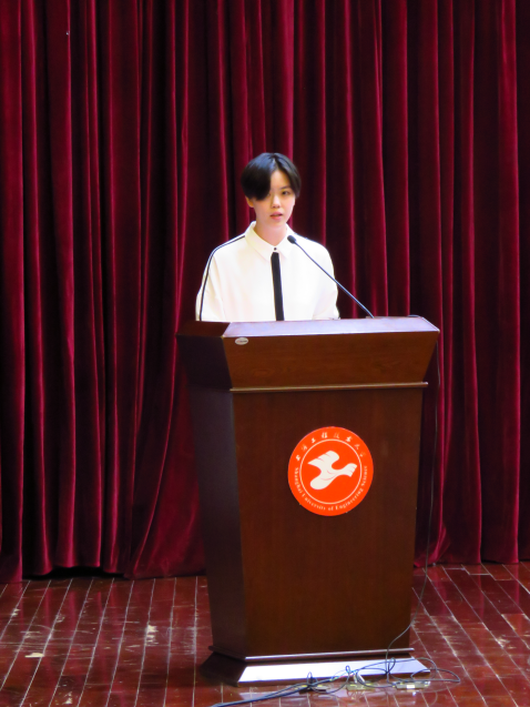 随后,本科生和研究生新生代表进行了发言。2019级本科生徐鸣同学希望大家在大学的四年要有对自身的规划,努力学习,寻找更好的未来;研究生代表朱敏琪同学也表示即时在研究生阶段也不能放松自己,对自己要更高要求,培养研究生钻研吃苦的能力。导师代表陈捷狮老师向大家寄语:“每天利用好时间,把自己做的好的事情记下来并进行标注更利于自己对时间的把控!同时也要对自身进行管理,学会做自己头脑的主人。”