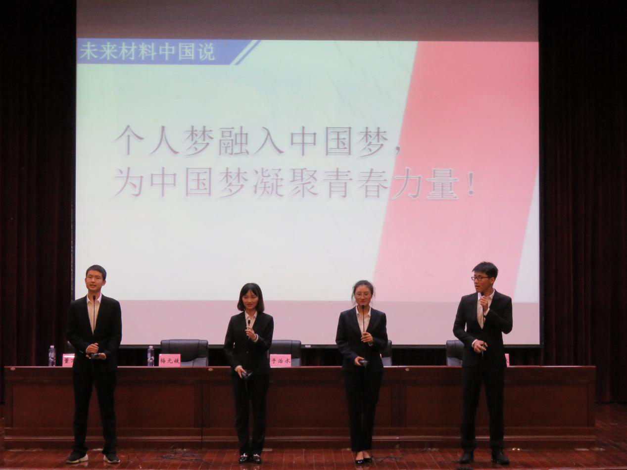 由本科生和研究生员工组成的演讲团队——“未来材料中国说”拉开了大会的帷幕。四位同学结合专业特色及国内航空、冶金、高铁等行业发展现状,以材料人在未来发展中的使命为切入点,带来了一场精彩的演讲。