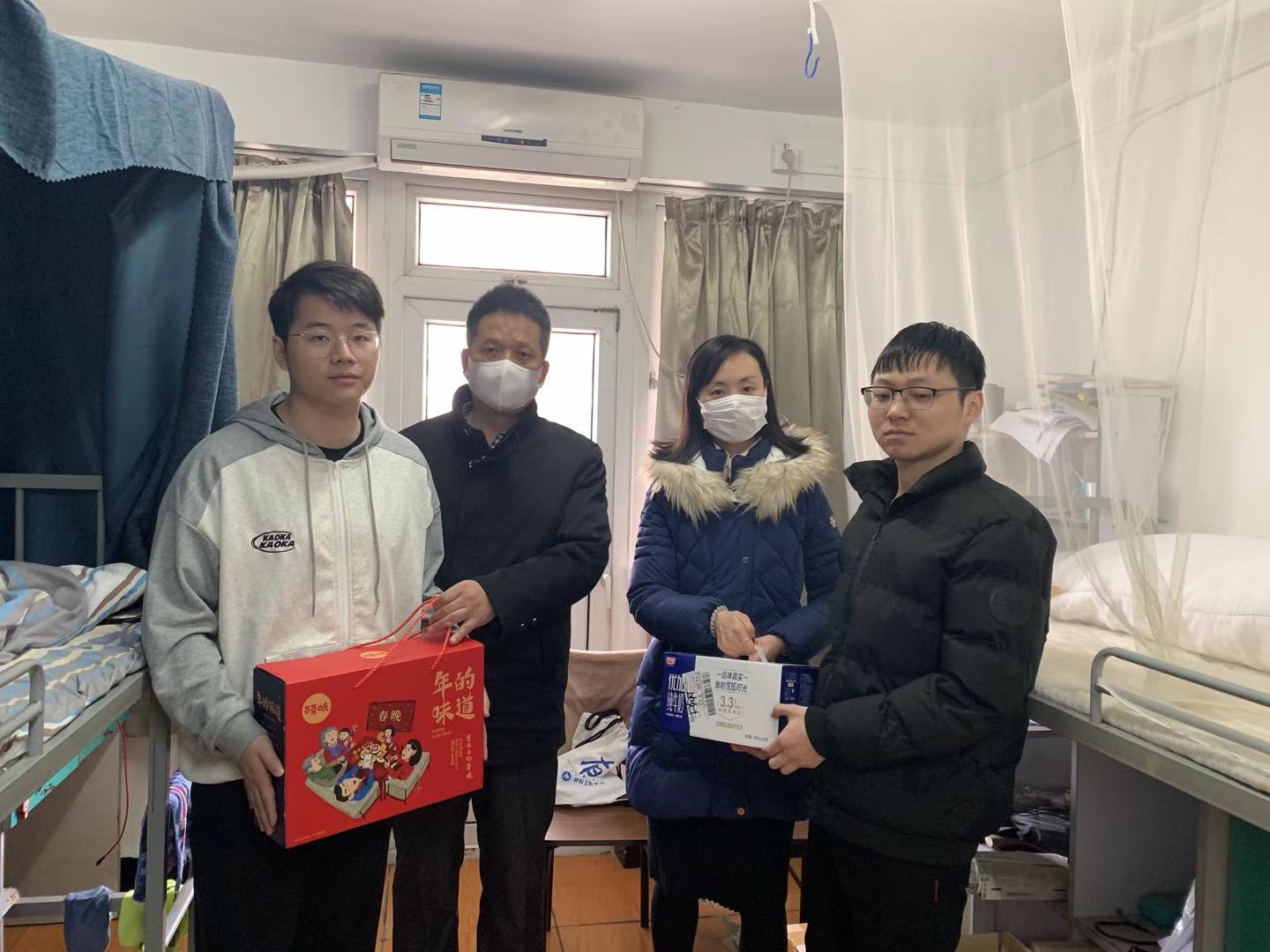 张朝民书记代表公司向员工们表达了全院教职工对他们的关心,向留校员工送上了牛奶、坚果大礼包、防疫物资等新春礼品。张书记详细了解了留校员工的生活、学习以及家里情况,要求留校员工严格遵守公司疫情防控的各项管理规定,做好个人防护,在公司过一个平安祥和的春节。