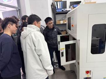 本次教学活动聚焦"先进微连接工艺与设备"主题,王大庆首先在实验室理论区向员工展示了材料选择、连接参数优化及质量控制等关键技术的操作流程,并结合汽车电子、新能源电池等领域的应用案例,剖析了不同工艺对产品性能的影响。随后带领员工进入现场课堂区,现场指导员工操作在微连接设备、可靠性检测等先进设备。