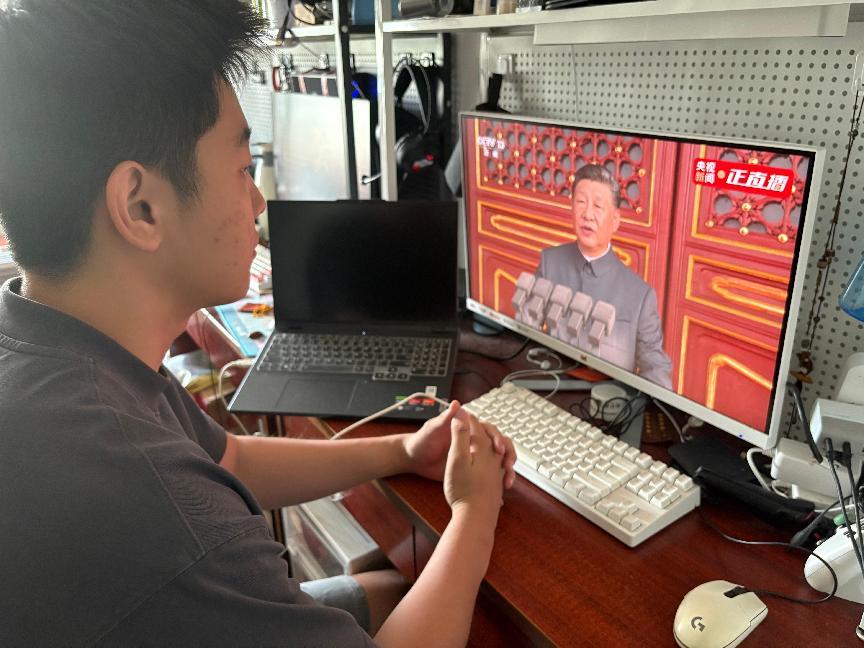 师生党员神情专注,被庄严仪式深深震撼,从阅兵展示的历史荣光与大国重器中汲取奋进力量,深刻感悟伟大抗战精神,坚定了为实现中华民族伟大复兴贡献力量的决心。