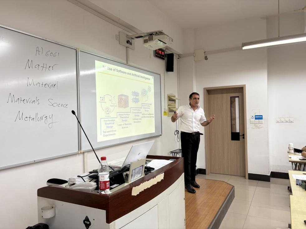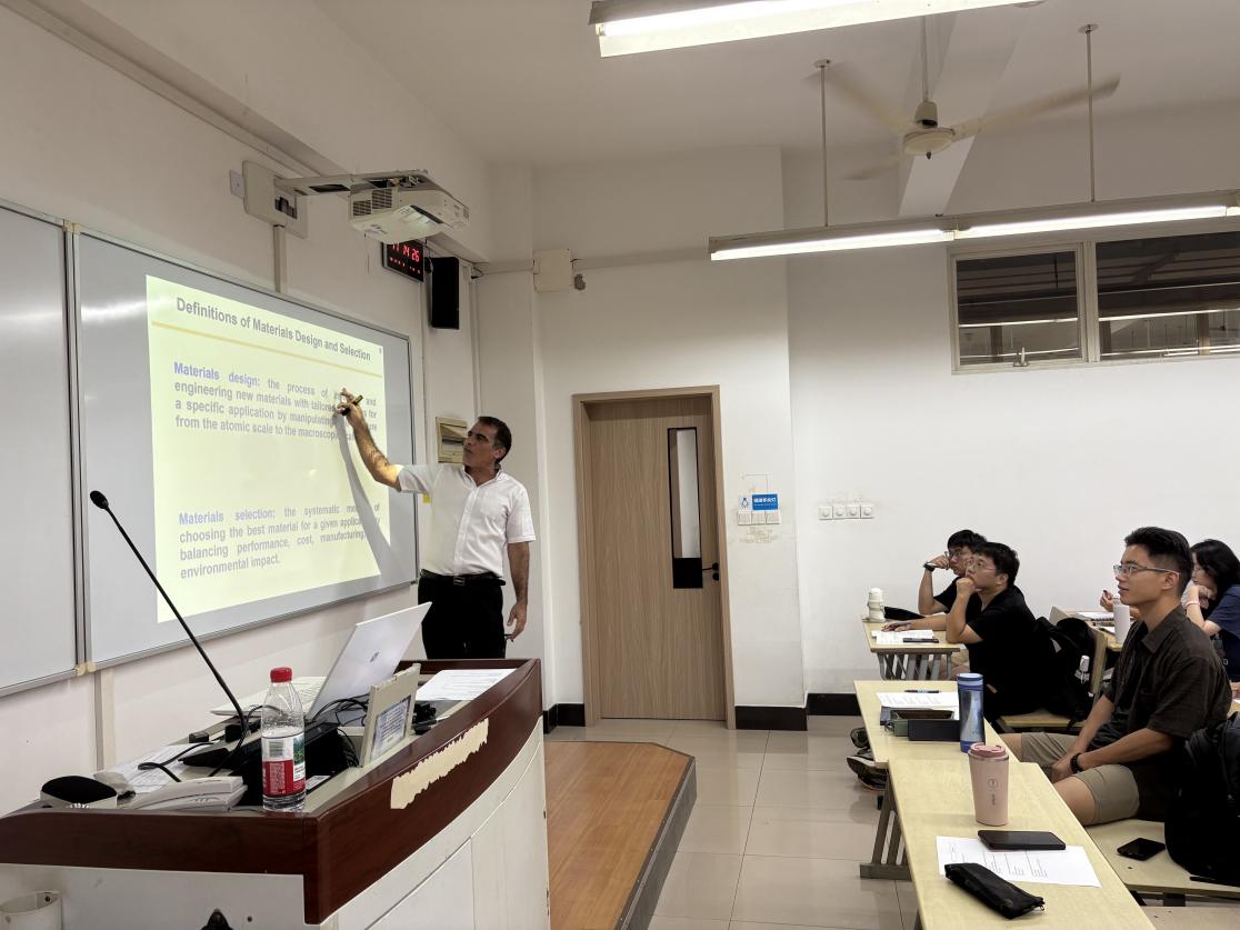 2025年9月,威廉希尔足球官网特邀日本九州大学国际碳中和能源研究所(I2CNER)的Kaveh Edalati副教授,为材料科学与工程专业大三员工带来《材料设计与加工》的专题课程。本次课程是“企业专家进课堂”系列教学活动的重要组成部分,旨在拓展员工的国际视野,增强对材料设计理论与工程实践的理解。
