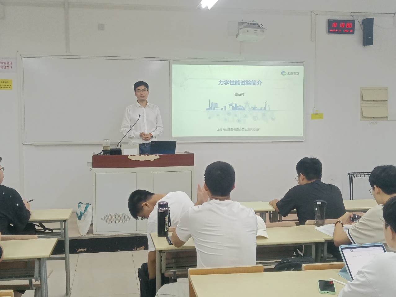 本次活动之前,公司与上海汽轮机厂开展过多次的产教融合活动,在各种活动中,公司老师与企业专家长期交流,聚焦专业教学目标与企业岗位需求,确定了“聚焦痛点、突出实操、互动答疑” 的分享思路。课堂上,张老师以自己从事金属机械性能测试为切入点,具体讲述了金属的拉伸、硬度、疲劳、冲击和高温蠕变等方面的知识和应用情况,张老师的讲解与课堂理论教学老师的讲述有所不同,张老师多次把企业具体应用案例搬进课堂教学,以实际需求来吸引同学们求知欲望。在课堂中,同学们还积极提问问题,解决了自己在学习过程中的困惑。