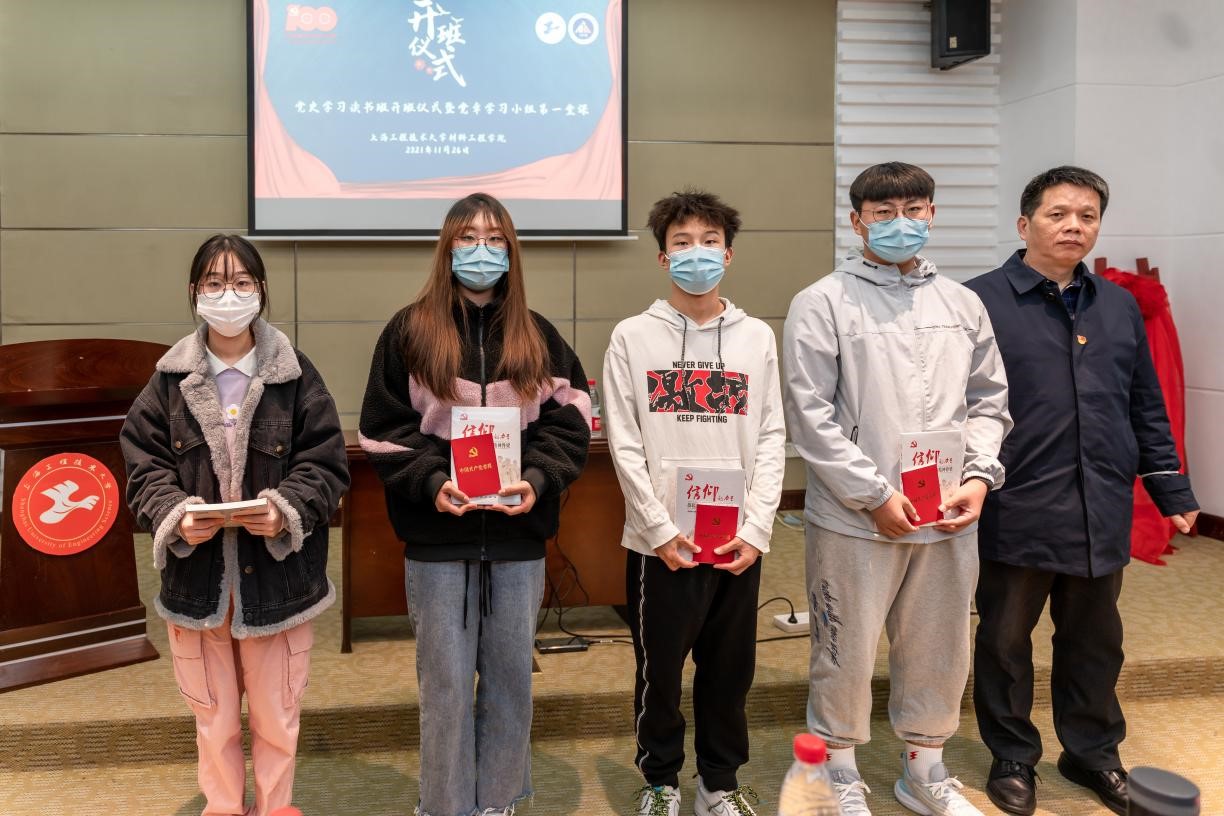 张朝民书记为2021年新生党章学习小组代表郭启越、赵新阳、余俊豪、侯瑾瑜同学赠送《中国共产党章程》和书籍《信仰的力量》,激励新生学员筑牢理想信念之基,提升思想政治水平。为夯实党员发展基础工作,提高广大新生的思想觉悟,激发新生知党爱党跟党走的志向和积极向上的政治热情,根据公司党委组织部的要求,公司党委在2021级新生中成立党章学习小组,开展党章学习教育活动。经过前期新生自愿申请和班级组建,公司一共设立了 12个党章学习小组,学员人数达到180余人,覆盖了2021级新生中所有入党申请者。党章学习小组将通过集体学习和自主学习的方式,利用上海本土红色资源、并结合党史学习教育中“我为群众办实事”等内容开展形式多样的实践教学,同时与新生入党启蒙教育有效结合,从而提高新生政治素养和理想信念教育实效。