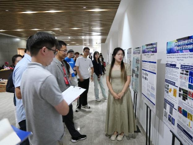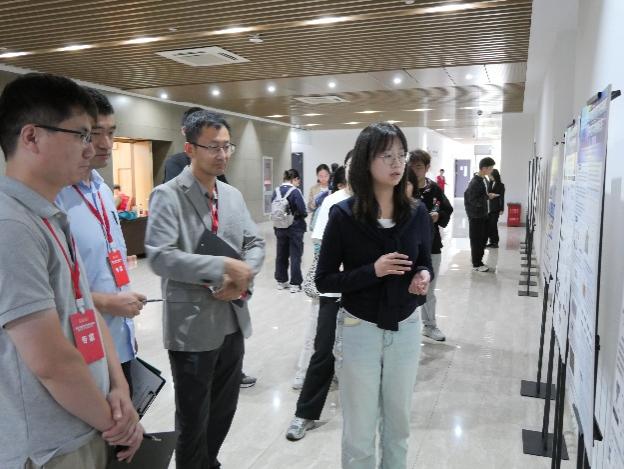 报告厅外展板学术展区的自由探讨氛围愈发浓烈。研究生们立于精心设计的学术展板前,主动阐释核心发现,与跨领域师生展开零壁垒对话。聚焦模型效度验证、数据隐含的物理图景、研究路径的谱系拓展,皆化作思维交锋的炽热焦点。专家的评审,以大师视野点燃创新思维,让每一位展板设计者受益颇深。展板学术区汇聚跨界碰撞、薪火相传的巅峰对话使整个论坛的学术氛围再上一个台阶。