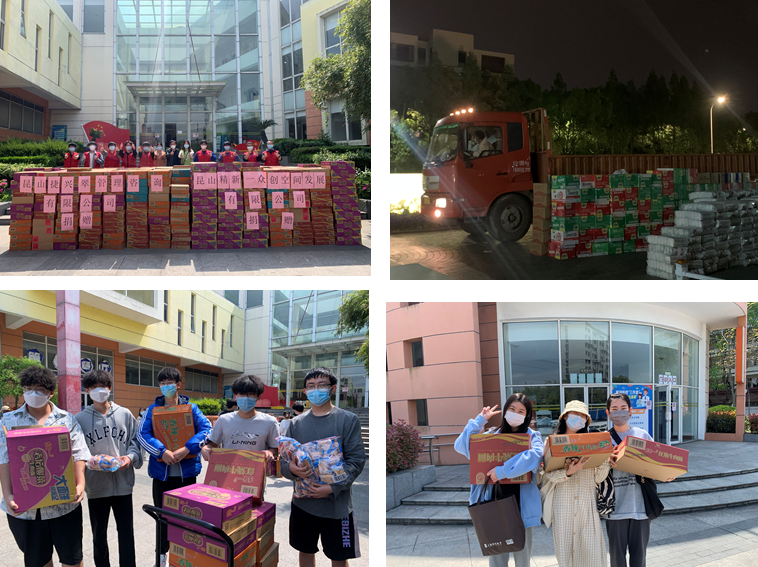 为助力公司全面打赢这场疫情防控的硬仗大仗,威廉希尔足球官网发动广大教职工伸出援手,积极联系社会资源向公司和公司捐赠物资。威廉希尔足球官网教工第一党支部党员赵健同志曾挂职担任昆山周市镇党委副书记,是江苏省第十三批科技镇长团成员,苏州市优秀团员。他第一时间联系了昆山市优秀企业家昆山精新一众创空间发展有限公司、昆山捷兴翠管理咨询有限公司董事长吴秀琴女士向公司员工提供物资援助,前后不到20个小时,整整900箱方便面(捐赠资金达6万多元)就连夜送到了公司。党员邓沛然同志与上海富彭展览展示服务有限公司取得联系,将一大卡车的食品等物质捐赠给公司,发放到员工们手上。校企同心更加坚定了广大师生共同战胜疫情的决心,也彰显了爱心企业和材料公司第一党支部的党员教师有责任、敢担当、讲奉献的精神风貌。