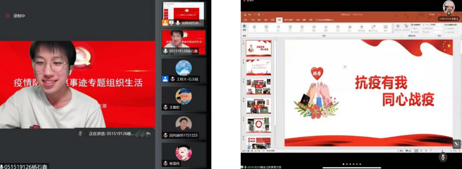 本科生第二党支部书记刘晓明介绍了当前疫情防控形势,传达了教卫工作党委的明确指示,做好疫情防控工作是当前公司的首要政治任务,坚决打赢这场疫情防控的大仗硬仗是我们必须扛起的重大责任。在当前这个紧要关头、关键时刻,公司党员师生第一时间响应组织号召,投身疫情防控一线,敢于担当、勇于担当,充分展现了材料人的精神风貌。