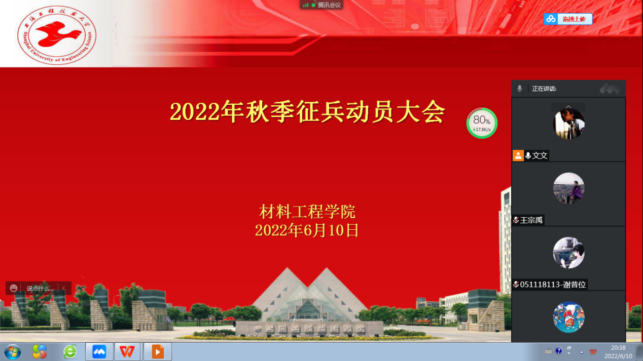 为深入贯彻习近平总书记“改革强军”重要指示精神,全面落实“两征两退”征兵工作调整改革,激发员工的参军热情,进一步宣讲征兵政策,鼓励广大毕业生积极报名应征入伍。6月10日晚,公司在线上召开2022年秋季征兵动员会。本次动员会由公司辅导员高宜文担任主讲人,2022届毕业班男生参加。