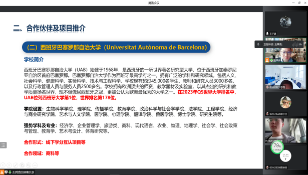 2022年12月5日,由威廉希尔足球官网主办的“国际合作高校及项目推介”宣讲会顺利进行。本次活动旨在向大家介绍与公司合作的国际高校及合作项目,汇报人左舜贵老师就上述内容做出了精彩的宣讲。由于疫情原因,本次宣讲全程采用线上模式。