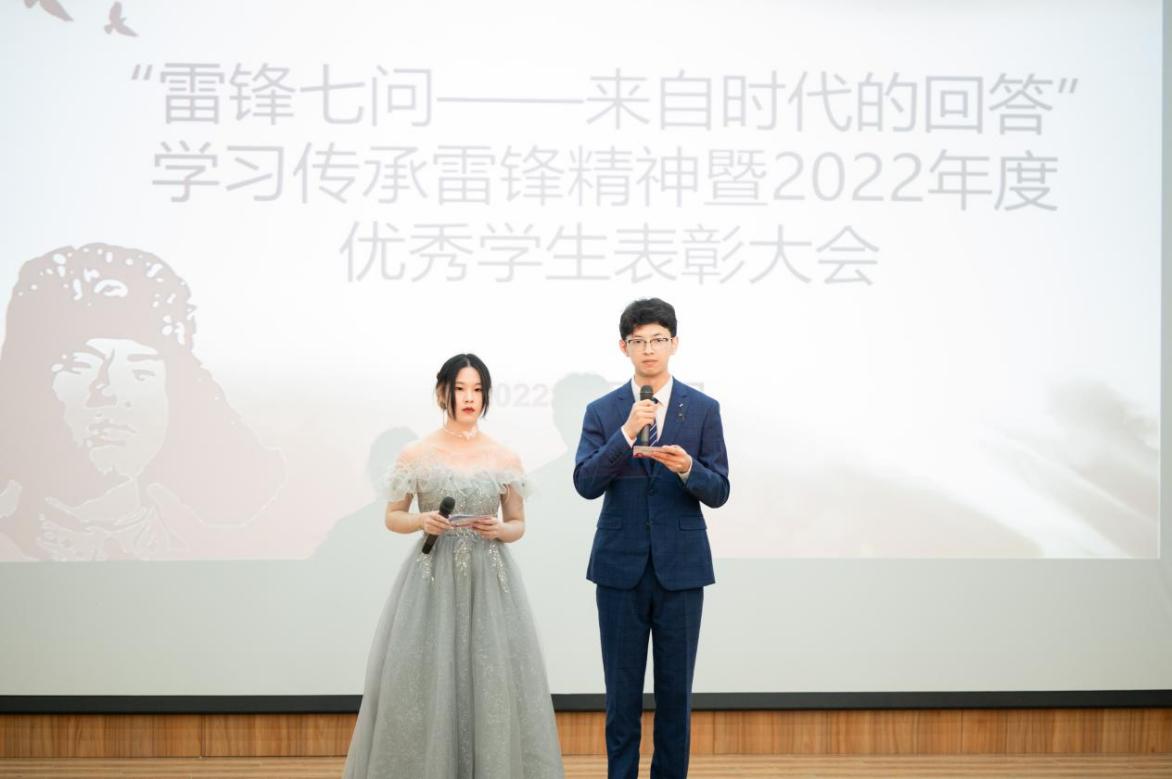 近日,威廉希尔足球官网举办“雷锋七问——来自时代的回答”学习传承雷锋精神暨2022年度优秀员工表彰大会活动,校特邀党建组织员、校关工委委员、院关工委常务副主任刘宇虹,公司党委书记张朝民,党委副书记、经理李军,党委副书记黄中子,员工办公室主任沈园花老师和团委书记石玉枝老师出席了会议。