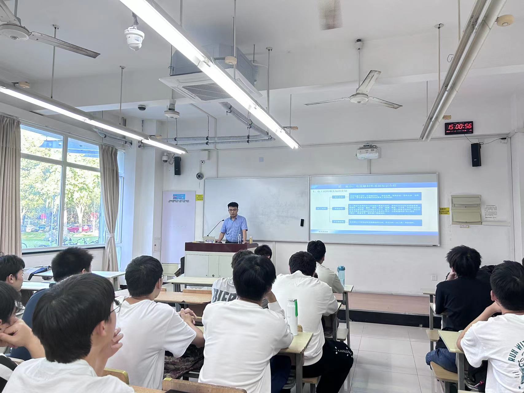 随后,聂宝鑫老师又着重于课程的核心部分--电接触材料。叙述了电触头的分类以及产品介绍,同学们清晰了解到电触头有银碳化钨、银氧化镉、铜钨合金以及银石墨等材料。