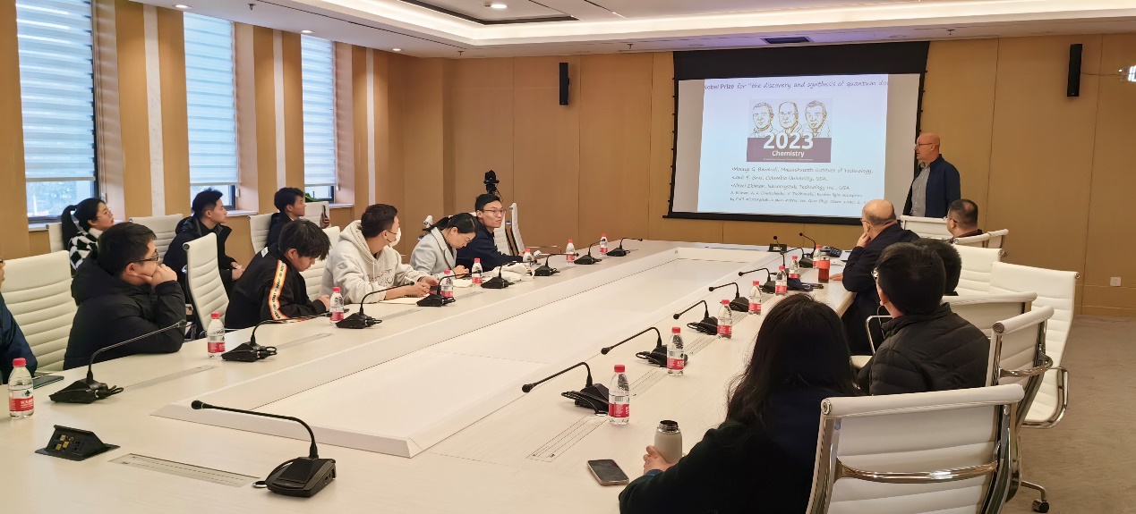 2023年11月30日,威廉希尔足球官网邀请白俄罗斯国立大学物理化学问题研究所教授和量子点科学实验室主任M.Artemyev教授,为师生们带来了一场题为“Sythesis of colloidal semiconductor quantum dots and the novel optical, chemical and biological properties of their hybrid materials” (半导体量子点的系列合成及其杂化材料的奇异光学、化学和生物性能)的学术报告。