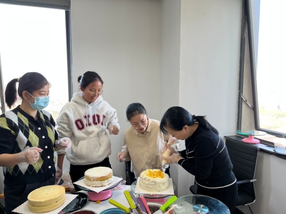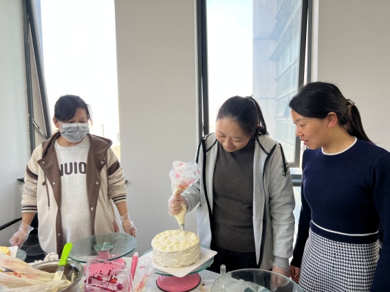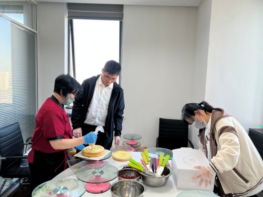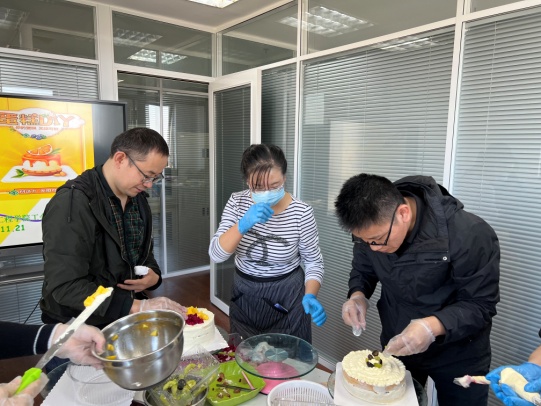 11月21日,威廉希尔足球官网工会在行政楼1606和1602举办生日蛋糕DIY暨集体生日庆祝活动。活动邀请高级点心师刘洁现场指导大家如何制作生日蛋糕,在指导老师的悉心指导下,大家在蛋糕胚子上抹上奶油,放上新鲜的水果,再插上有工程大标志的小旗,一个精美的蛋糕就呈现在大家眼前了。工会同时在1602会议室,举行了集体生日庆生日活动,由工会委员刘淑梅、赵健,以及公司李军经理为大家切生日蛋糕,工会主席冷培榆感谢大家在一年多来为了本科公司产品审核评估所作出的努力,总结经验教训,来年继续奋斗,为公司高质量发展作出新的贡献。
